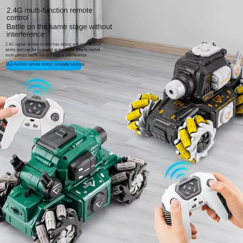 "This water bomb spray tank features 360-degree rotation and lateral drift capabilities, providing kids with exciting driving and shooting fun."