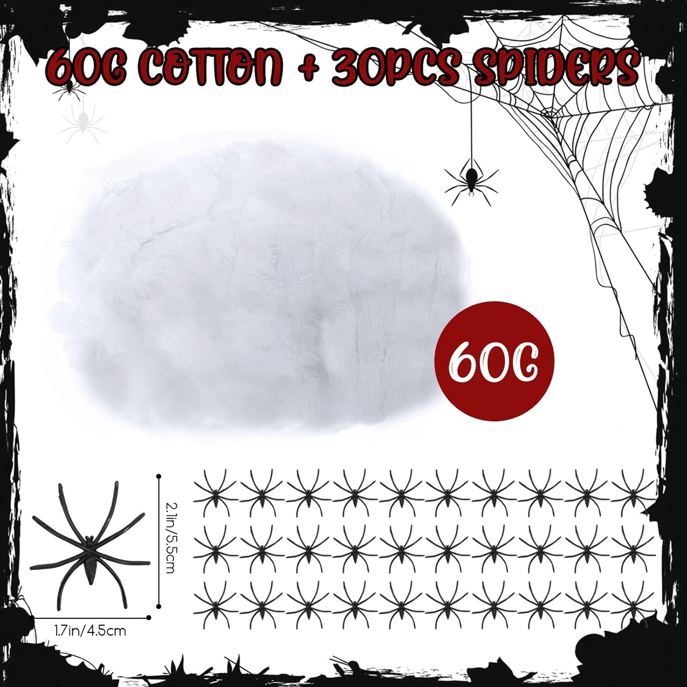 60g Halloween Spider Web Decoration with 30 Fake Spiders for Indoor Outdoor