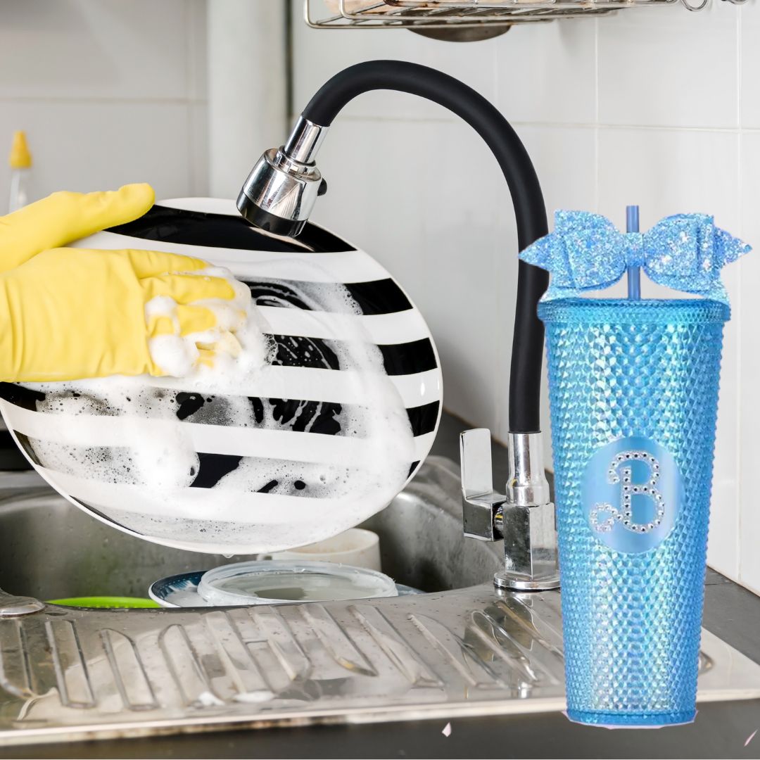 700ml Studded Textured Tumbler With Straw And Decorative Bow