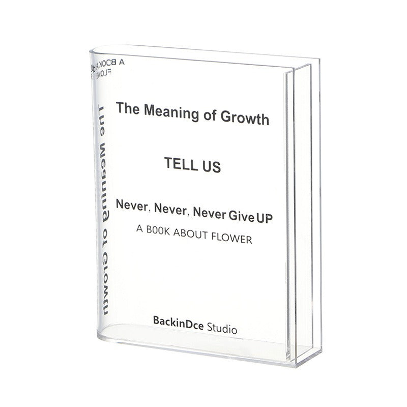 With its minimalistic and refined style, this acrylic book vase is a unique way to display fresh or artificial flowers. Perfect for bookshelves, office desks, dining tables, coffee tables, or windowsills—adding an artistic touch without taking up much space.