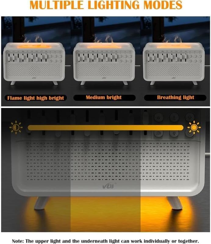 Create a cozy, flame-like glow from the top light, paired with a soothing warm night light underneath. Whether you prefer a gentle flicker or a steady glow, these customizable lighting modes bring a comforting ambience to any room.
