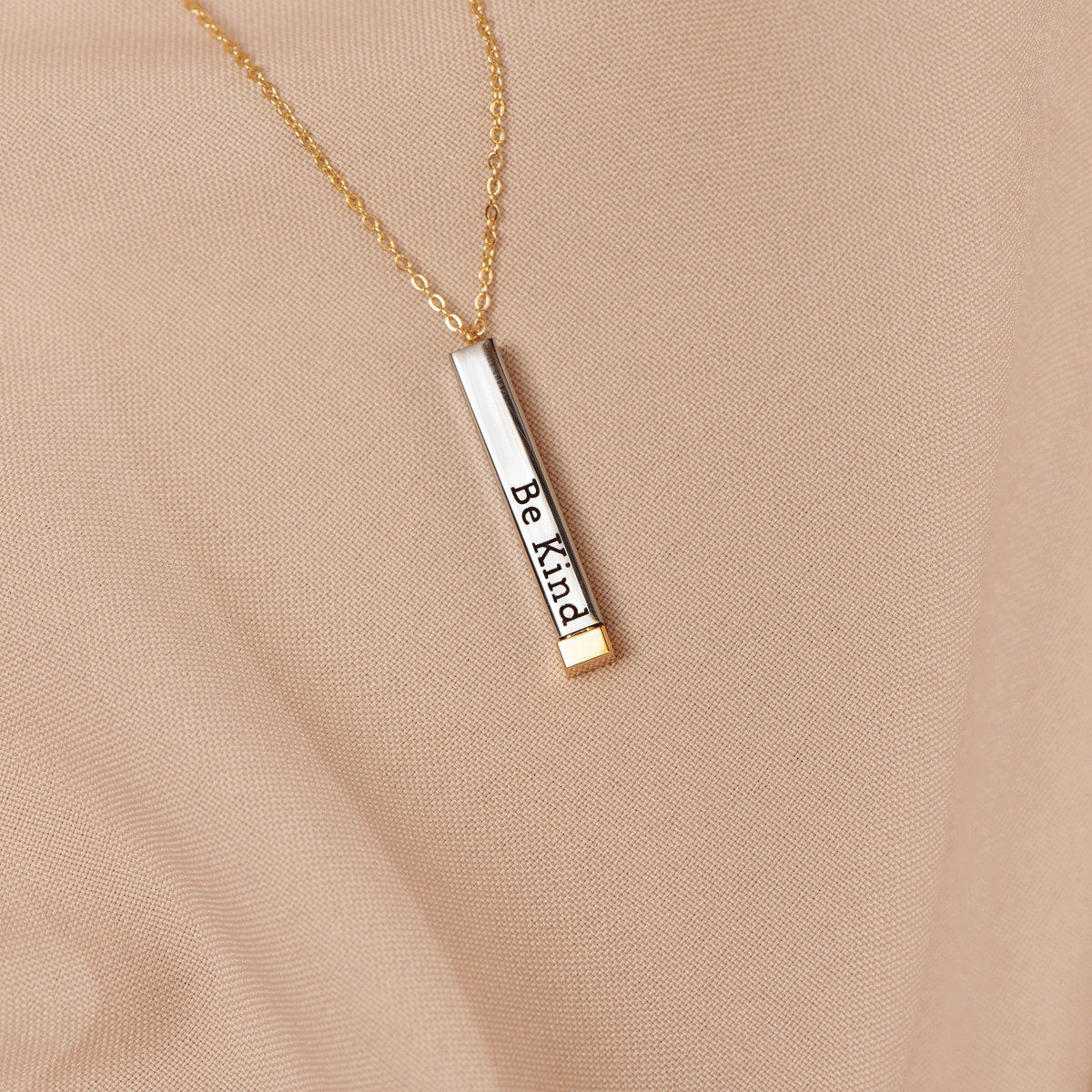 Crafted for those who enjoy kindness with a hint of humor and sass. Spice up your collection with this Hidden Message Necklace that comes with a delightful twist. On the outside it bears a thoughtful reminder to "Be Kind" but with a simple slide it reveals the true message "Be Kind ... of a bi♡ch". Kindness comes in many forms but the best one is when it makes everyone smile, and this necklace is guaranteed to put a smile on your face every time you glance at it. Surprise yourself or someone special with this empowering piece. It's the perfect gift for any occasion, adding a touch of humor to a heartfelt message.
