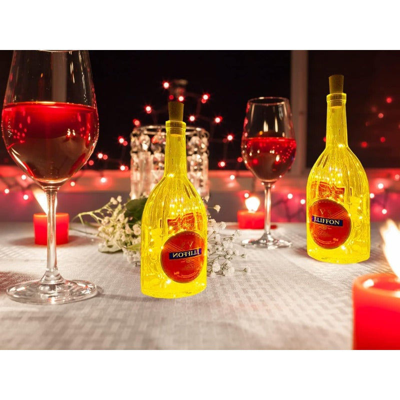 The tapered cork base (Ø 0.6–0.9") nestles securely into wine, soda, or liquor bottles—no drilling or wiring needed.