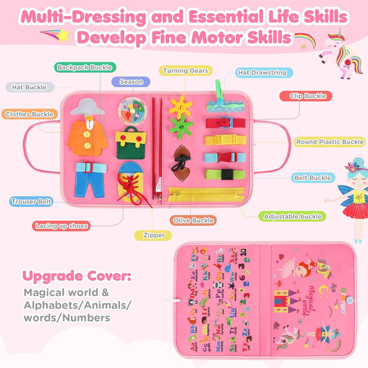 【HIGH-QUALITY】This puzzle toy is made of toxic-free soft fabrics and felt with no hard corners. Sturdy binding makes it stable and not easy to fall off. The busy books have passed the certification of the US.