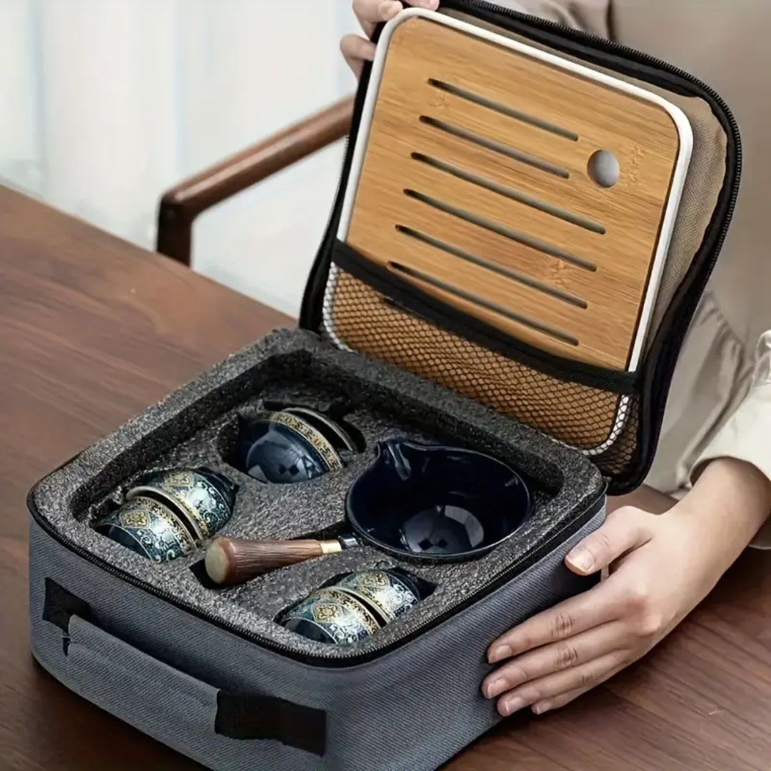 Complete with a custom-fitted travel bag, this set is designed to go wherever you do. Whether you're heading to the office, going on a picnic, or traveling abroad, your tea time can now come with you. It blends functionality with oriental serenity—an ideal escape from the busy world.