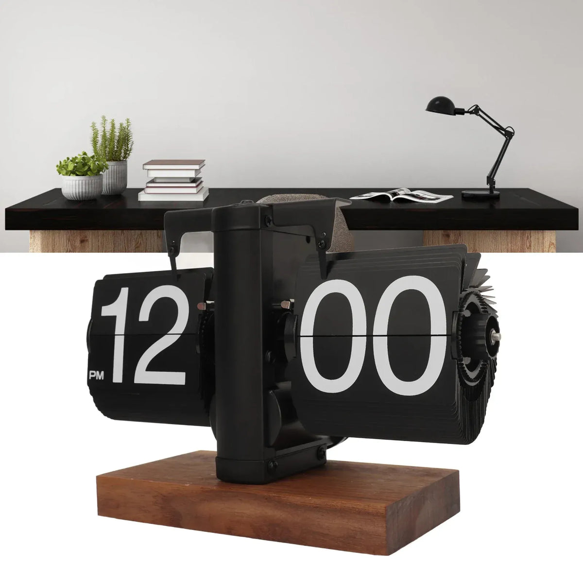 Built with a black walnut base and PVC construction, this clock combines durability with a refined aesthetic. Its sleek design makes it ideal for placement on desktops, shelves, bedside tables, or workspaces, adding retro charm wherever it stands.
