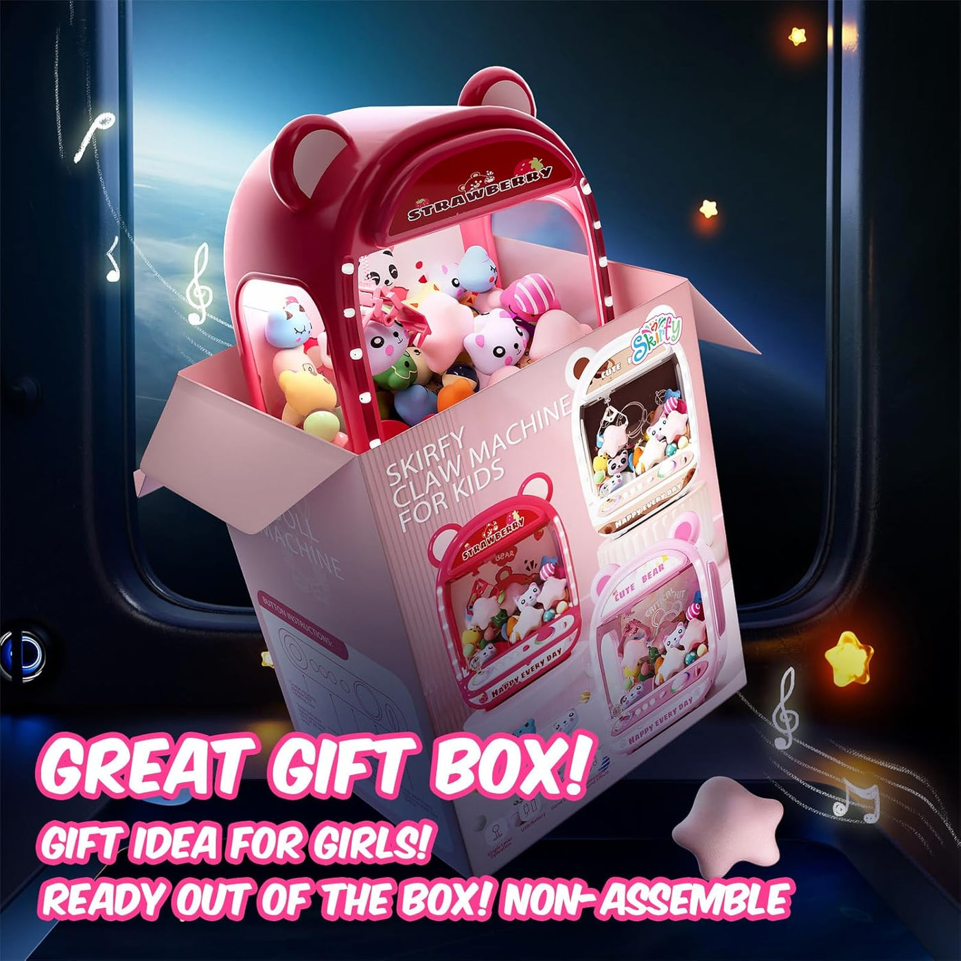 27 rich prizes - Skirfy kids mini claw machines comes with 27 different types of prizes: squishy unicorns, plush dolls, wobbler toys, and more. You can place any prizes you like in the machine, such as small toys, trinkets, packaged candies, snacks, or small treats. Just imagine the excitement when kids try to grab their favorite snacks, making every game not only fun but also beneficial.