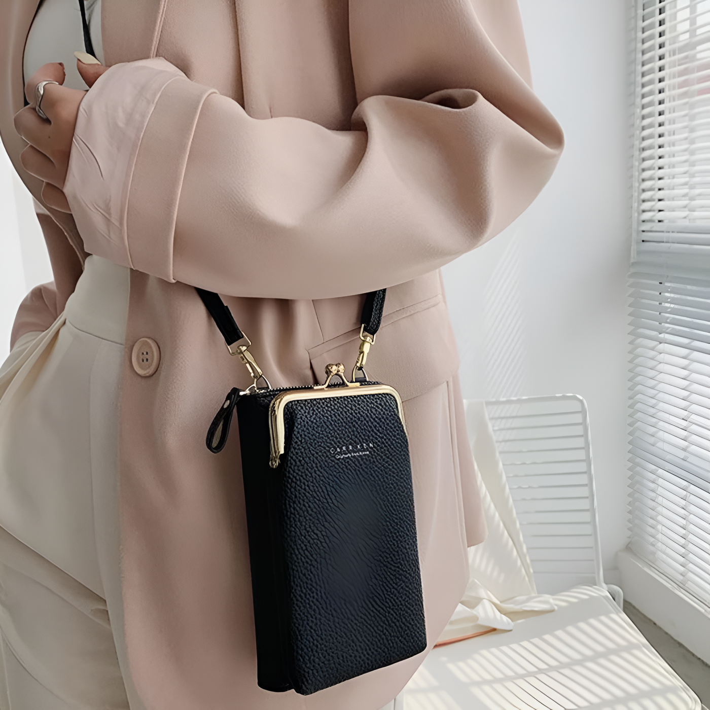 Conveniently Organized: Our compact yet spacious design ensures easy organization. With dedicated compartments for your smartphone, cards, keys, lipstick, and glasses, everything is within reach. No more fumbling through cluttered bags