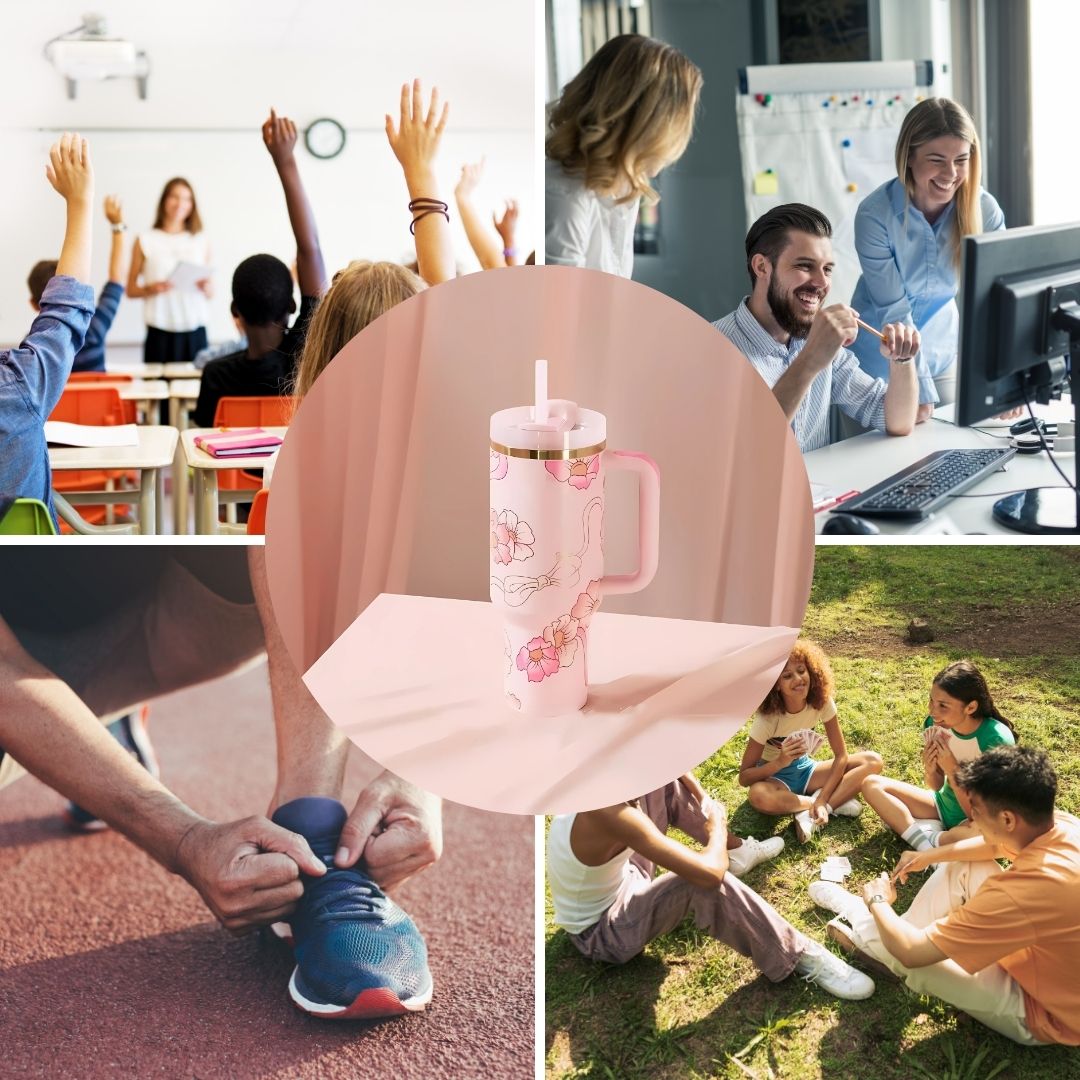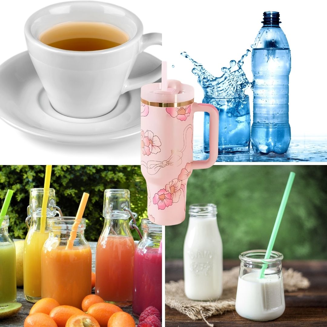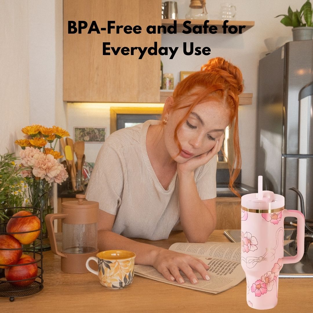 Floral Pattern Insulated Tumbler With Handle And Straw