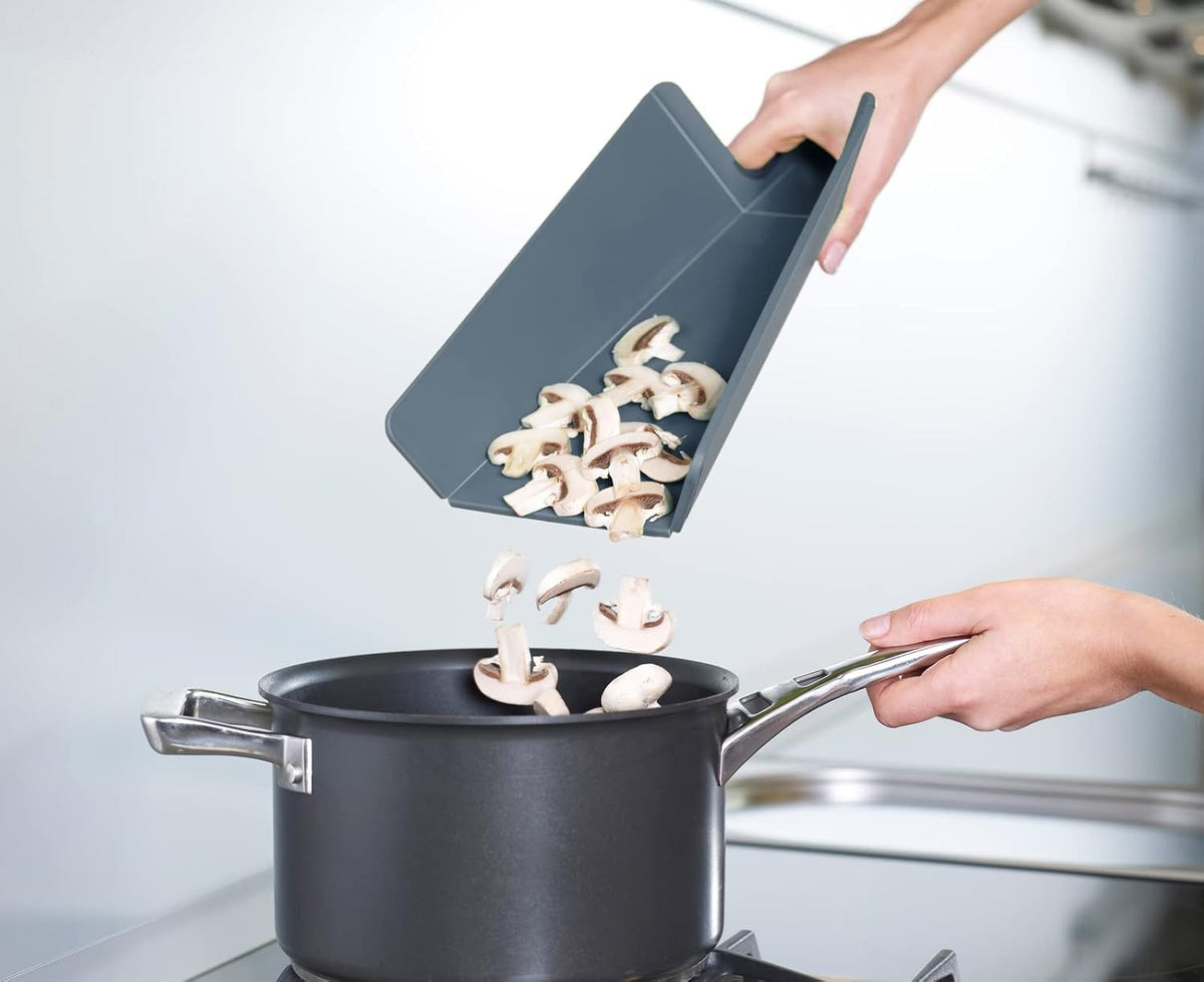 Say goodbye to messy countertops! The unique folding mechanism of this cutting board allows you to chop and transfer ingredients directly to your pot or pan with ease. The specially designed hinge prevents spillage and ensures a clean kitchen experience.