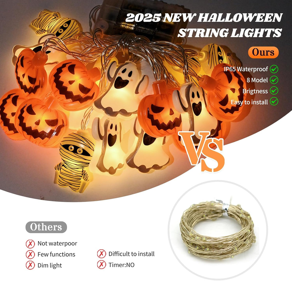 Designed with 8 lighting modes including steady glow, fade, wave, and flash, these lights transform any space into a magical and spooky Halloween setting. The included remote control and timer function make operation simple and convenient, letting you set 6 hours on and 18 hours off for hassle-free illumination.