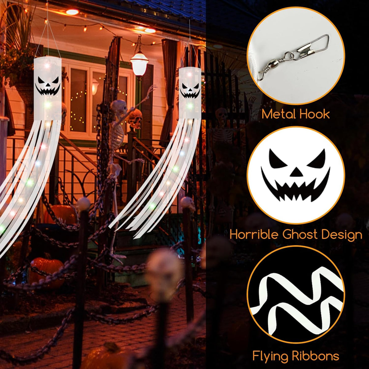 Perfect for both residential and commercial displays, these Halloween windsocks are easy to hang with included hooks and straps. Whether for your lawn, porch, doorway, trees, or themed events in restaurants, malls, or schools, they instantly upgrade your decorations with festive ghostly flair.