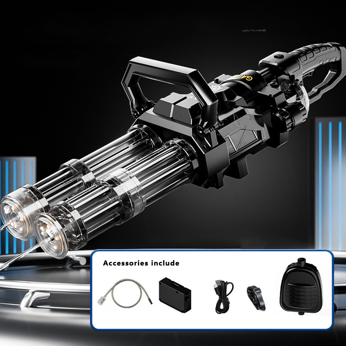 Inform when this item available High Speed Shooting Dual Muzzle Gatling Water Gun Backpack (muzzle LED)