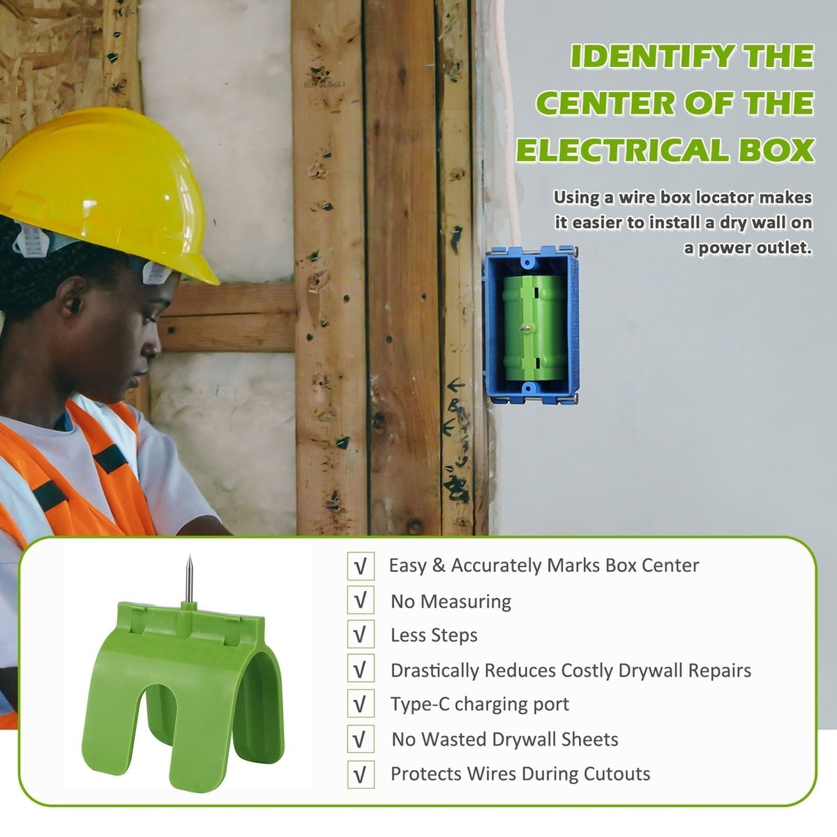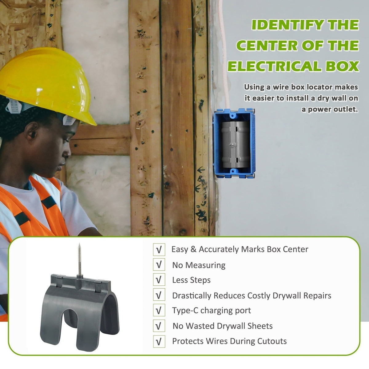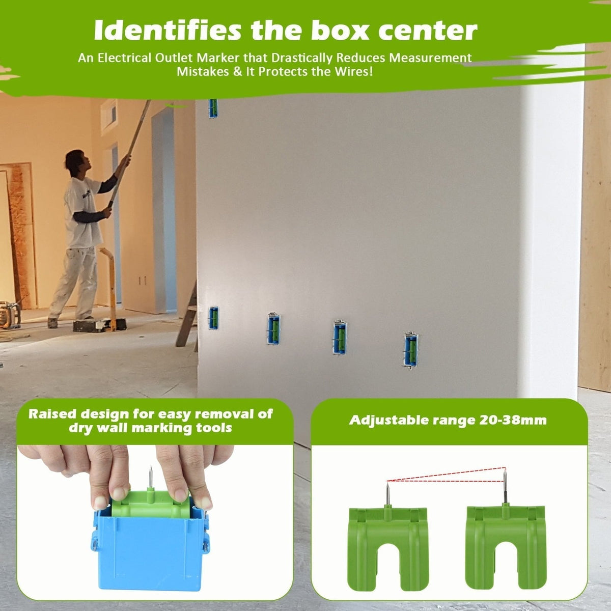 INCREASES JOB SITE SAFETY: By reducing errors in outlet positioning and protecting wires from damage, this outlet marker contributes to a safer work environment for all involved in drywall installation projects.