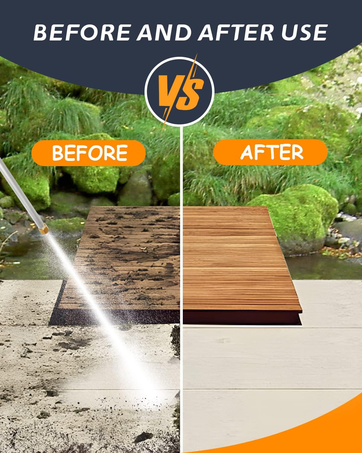 🌊【2 Jet Nozzles】Our high pressure power washer wand comes with two different jet nozzles (Fan-shaped and Linear) that let you tackle a variety of cleaning tasks with ease. Whether you need to wash your car, clean your windows or patio, or water your garden, you can switch between the nozzles to adjust the water pressure and flow to your needs.